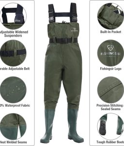 • Fishing Waders for Men with Boots Womens Chest Waders 2-Ply Nylon/PVC Waterproof for Hunting with Boot Hanger