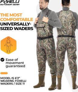 • Foxelli Chest Waders, Waterproof 4mm Neoprene Hunting & Fishing Waders for Men & Women with Boots