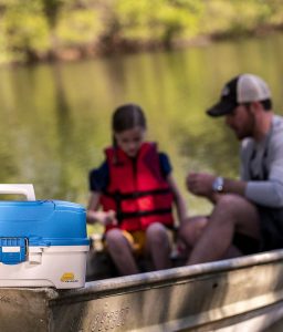 • Plano Ready-Set-Fish 3-Tray Tackle Box with Tackle, Aqua Blue/Tan, One Size