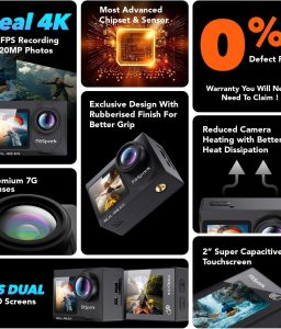 • -10% Real 4k30FPS Action Camera Waterproof Dual ColorScreens with WiFi EIS Touch Screen Underwater Sports Camera with External Microphone Remote Control 2X Batteries Eagle i15 ProMax