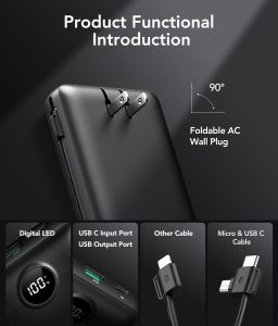 • -14% Portable Power Bank, Ultra Slim 10000mAh Portable Charger, USB C External Battery Pack with Built-in AC Plug, Charging Cable, Output Port, Compatible with All Kinds of Cellphones …